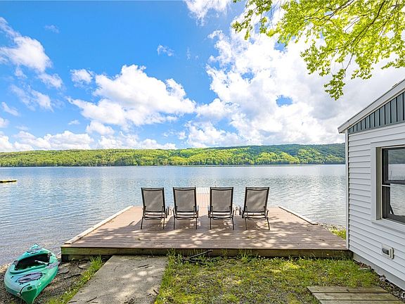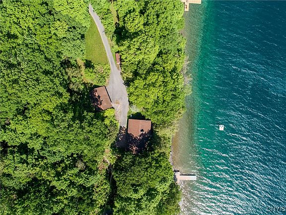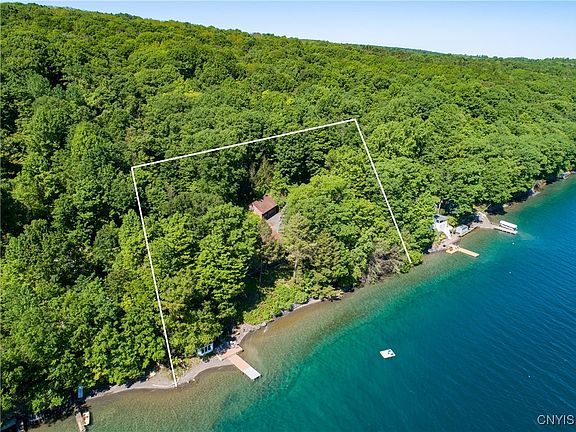 Skaneateles Lake gated year round vacation home with expansive 368 feet of private water frontage, completely renovated and offered turnkey. Situated in a private Adirondack style paradise, this spectacular property, is within 17 min of the village of Skaneateles (voted 1 of America’s Best Small Towns to Visit) and the many shops, restaurants and activities it has to offer. For buyers seeking luxurious seclusion; this well-appointed hideaway can be accessed 3 seasons; affording exceptional views from multiple decks, level waterfront including permanent dock, lakeside “boathouse”, and shale beach; 2 story 3 car garage and waterfall. This exquisite property features 2 full levels of living. The main floor hosts a pristine white kitchen opening to a Great room with gas fireplace and massive deck perfect for entertaining. Additionally, this level offers a primary suite with private waterside balcony, 2 additional bedrooms, and hall bath with laundry. The lower level presents a cozy Family room, lakeside bedroom and den / office, rec and bonus room areas, full hall bath, and covered deck with hot tub. This special waterfront retreat is perfect for buyers looking to entertain family & friends, enjoy water sports and hiking, and ultimately relax, in a tranquil sanctuary. Buyers will feel like they are the only ones on the lake!
