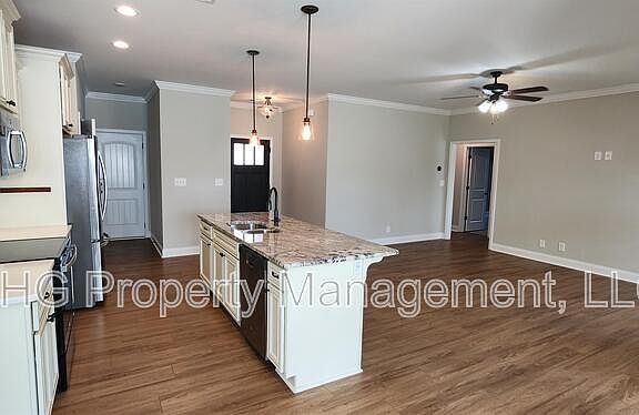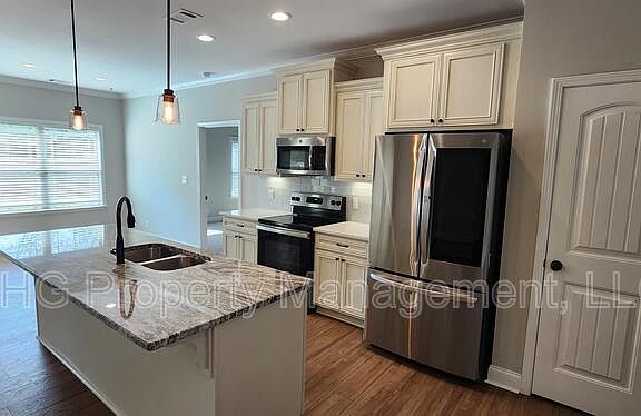All Brick Home with split/open floor plan featuring quartz countertops s/s appliances, island, pantry and separate laundry. Trey ceiling & recess lights in main bedroom with large closet & master bath has tile shower with shower door, garden tub & double vanity. Covered back porch, 2 car garage