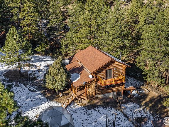 Serenity seekers, this is it! Secluded, custom mountain home at the end of a private driveway. Situated on 12 acres of healthy forest with amazing rock outcroppings. This home was built by a true craftsman who hand-selected each log and stone for their individual character and beauty. Full exposed logs, fossil sandstone floors, lichen stone fireplace, T&G ceilings, and artistic use of beetle-kill pine, spruce, and one of kind accents throughout. Radiant in-floor and baseboard hot water heat. Sunny observation deck from the master overlooking the grow-dome, and garden area with chicken coop. Large covered front porch, 2 garage buildings; Oversized 2 car + shop with loft and plenty of power and oversized 1-car with power. Park your full-size truck or SUV no problem! Bonus off-grid, rustic, studio cabin with a large deck. Use for guests, yoga, meditation, wildlife viewing, whatever you want. Xbar7 Internet provider. Private Road Maintenance Association $460/yr.