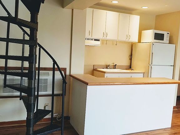 Sunny, spacious, quiet loft home in great downtown location. This home features two floors, high ceilings and skylights. The kitchenfeatures a breakfast bar overlooking the living room, good cabinet space, and includes a brand new stove. Living room is large and bright with sliding glass doors to quaint terrace space. There is a full bathroom on the first floor and a half bath on the bedroom level. Upthe spiral stairs is a large bedroom and a separate nook. Bonus both floors have oversized walk in closets! Small pets allowed with landlord approval and pet fee. Do not miss out on the unique space. Small pets allowed with pet fee and landlord approval.