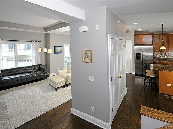Bright and Spacious 4 level townhome in the heart of Norwalk. Easy living,convenient to restaurants, shopping, highways and public transportation. This stunning 2 bedroom, 2.5 bath condo-townhouse has an inviting kitchen with granite counters, stainless steel GE appliances, pantry closet and a breakfast island. Open concept living/dining room features large windows and sliding glass doors to the balcony. Gleaming hardwood floors on the main level, a guest bathroom, high ceilings and zoned central air conditioning are just some of the wonderful features this home enjoys. A private 2 car garage with storage room on the ground level opens directly to your entry foyer. Upstairs is the master bedroom with en-suite bath, double sinks and walk-in closet and a second bedroom, full bath and laundry closet. The top floor has a large media/family room which can also be a third bedroom with a oversized storage closet. Newer hot water heater & C/A compressor! Just unpack and enjoy your new townhome! Monthly HOA fees only $492.51