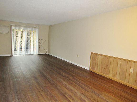 Ground floor, 2-bedroom unit with walk-out patio! Large living room/dining area, modern kitchen and bath with ceramic tile floors. Both bedrooms have laminate flooring & the primary bedroom has a double closet. Slider leads to a rear, concrete patio. In-wall A/C unit, FHW baseboard heat & hot water provided by association. Amenities include an In-ground pool (under renovation) & playground! Unassigned parking for 2 vehicles. Coin-op laundry. Minutes from highway access, restaurants and shopping, this condo is in an ideal location! Cash or conventional financing only. Don't wait - this affordable condo will go fast!