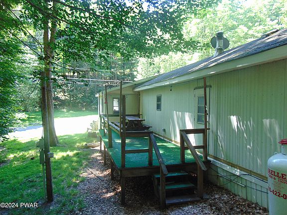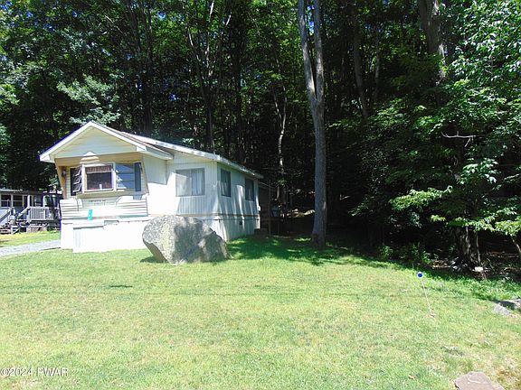 Year-round lake Living with an affordability. This mobile home is located in a Lake Wallenpaupack community offering 2 pools, boat ramp, central water and sewer. The home has a newer garage to store a small car or lake toys in.