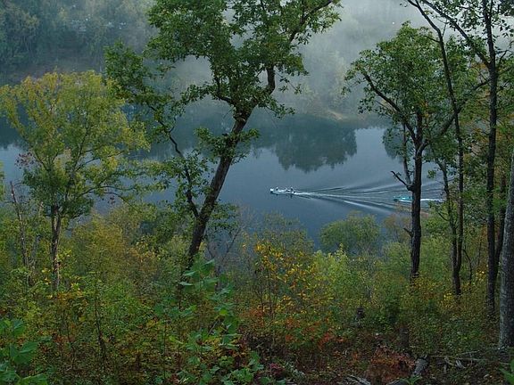 Fantastic view! Beautiful spacious 3 bedroom with loft, 3 bath home with acreage on old growth oak wooded bluff overlooking White river. 7 minutes to dock on Bull Shoals Lake. Long paved drive off paved county road. Media room, wet bar, three levels, garden pond, granite countertops in kitchen and bar, huge wraparound deck and like new only used as vacation getaway. Little to no maintenance with established perennial landscaping by a Master Gardener.