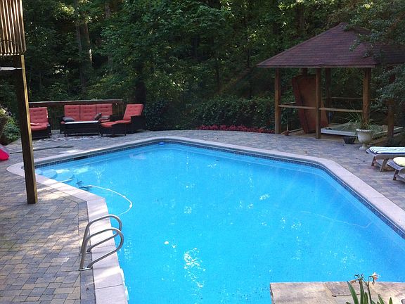 Large home perfect for entertaining with 5 bedrooms (master on main), an office and two separate living areas on the main level. A huge, finished, day light basement with large bar that seats 8. Bar also has sink, fridge, and dishwasher which makes entertaining even easier. Beautiful gunite swimming pool and hot tub with newly refinished paver pool deck. Pool and back yard are surrounded by trees and is very private.