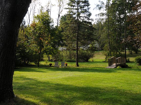 Highly desirable neighborhood with mature trees in old Delmar. Move-in condition with two-car garage. Many recent updates. Deck off kitchen connects to patio off lower walk-out basement overlooking beautiful landscaped deep backyard with stream and bridge bringing much wildlife into view. Eat-in kitchen with beautiful maple ceiling-height Kraftmaid cabinets. Dry, finished basement with possible 4th bedroom, cedar closet, carpeted and tiled areas with hottub. New pella window and double doors to backyard. Large storage/work room with 13 foot workbench and lots of shelving.