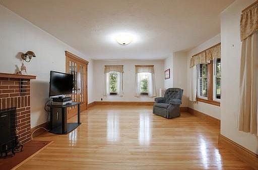 - Liv Dscrp: Fireplace, Window(s) - Bay/Bow/Box, French Doors, Flooring - Wood