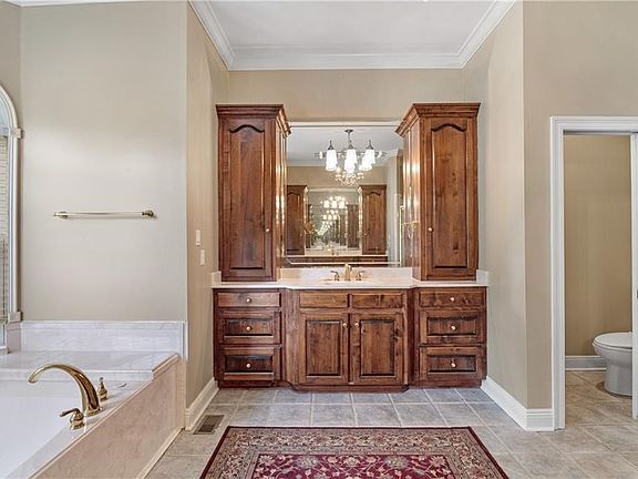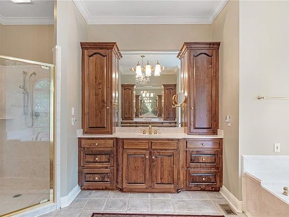 Owner Financing at 5% Interest!! Fairhope Golf-course Estate! Located in sought-after Rock Creek Subdivision, this brick, 4 bedroom, 4.5 bath overlooks the 4th and 5th holes of Rock Creek Golf Club. The house has been completely repainted! Truly a showplace, this over 4000 sf home is loaded with features: leaded glass double entry doors, two-story foyer and family room, fireplace surrounded by built-ins, beautiful oak & tile floors, and elegant formal living room & formal dining room with heavy crown moldings and wainscoting. Primary bedroom boasts sitting area, tray ceilings, french doors that open to screened porch, fireplace, double walk-closets and a luxurious, en suite bath with double vanities, over-sized jetted tub, and separate shower. Don't miss the gourmet kitchen with custom cabinets, granite counters, Thermador five-burner gas cooktop, island w/prep sink, double ovens, SS refrigerator w/icemaker, Bosch dishwasher, microwave, kitchen desk, large pantry, spacious breakfast room and eat-in bar. Laundry room comes with washer, dryer, built-in ironing board, utility sink & custom cabinets. Flex space, located on main level has separate, covered, entry entry, full bath, & kitchenette area. Could be used for an office, media room or turned into guest suite with minimal renovation. Upstairs has loft area, 3 bedrooms, 2 with private baths and another with Jack N Jill bath & lots of attic storage. Other extras include: cedar closet, massive storage and workshop area in walk-out basement, triple garage/workshop, alarm system, screened porch, large deck overlooking back yard, circular driveway & gutters. New roof installed in 2021. Mature trees & lush landscaping surround home on deep, private lot. Some photos are virtually staged. Owner will consider owner financing. Details in Agent Remarks.