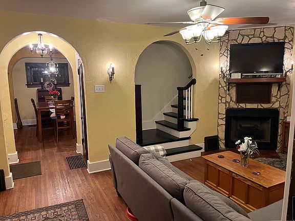 -- NEW PICS SEPT 12 -- Charming Home Close to Downtown with Modern Updates!Looking for character close to downtown? This home is filled with "old world" charm, from the original working light sconces to the numerous arches—it's ready for you to move in and make it your own. Inside, you'll find beautiful hardwood floors and three spacious bedrooms with 1.5 baths. The den off the living room, accessible through two sets of French doors, is perfect for a home office or a kids' playroom. Cozy up next to the fireplace in the inviting living room during the winter months.Recent updates include new flooring in the kitchen, newly remodeled bathrooms, and fresh paint throughout the home. The property is truly move-in ready! The backyard offers plenty of space for entertaining, complete with an outdoor fireplace, perfect for gatherings. And for those needing storage, the detached garage and basement provide ample space.Owner pride shows throughout—this home is waiting for you to love it and add to the story of 130 McKinnie Ave.