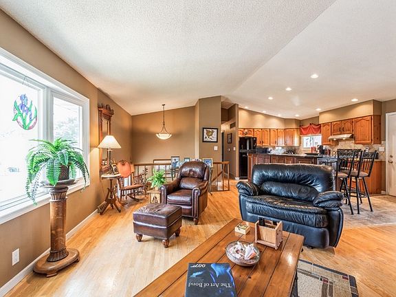 Check out the upgrades in this airy and open floor plan, vaulted great room, newer kitchen center island with granite countertop, main bath, hardwood flooring in great room, large composite deck, siding, roof, windows, doors and more, beautifully landscaped fenced yard, rec room with fireplace, custom bar and refrigerator, check out the unique storage shed, street with very little traffic, Not just a place to live!