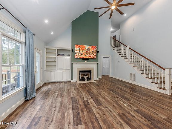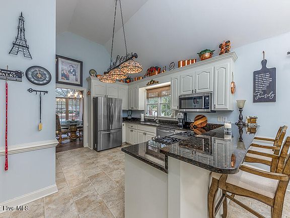 Discover the charm of Taberna, where community living meets luxury in this beautifully crafted custom home. Nestled in one of New Bern's most sought-after neighborhoods, this residence offers a lifestyle rich in amenities like a championship golf course, lighted tennis courts, a refreshing pool, a private dog park, and scenic sidewalks perfect for morning or evening strolls. Enter inside to find an open floor plan flooded with natural light, highlighted by soaring ceilings, gleaming hardwood floors, and thoughtful finishes throughout. The living room invites relaxation with its built-in shelving and cabinetry, while a private office with sleek pocket doors offers the perfect work-from-home setup. In the heart of the home, a spacious kitchen awaits, ideal for creating culinary delights, complete with an airy breakfast nook overlooking the lush backyard and a formal dining room designed for special gatherings. Unwind in the first-floor master suite, featuring a spa-like bathroom with a jacuzzi tub, walk-in shower, and dual vanities. Upstairs, two additional bedrooms and a versatile bonus room provide endless possibilities - from a cozy library to a game room or guest suite. Outside, enjoy Carolina's scenic sunsets on the expansive deck, surrounded by meticulous landscaping. With a generous corner lot, ample privacy, and a two-car garage, this home truly has it all. Don't miss out - schedule your private showing today and experience this stunning property for yourself!
