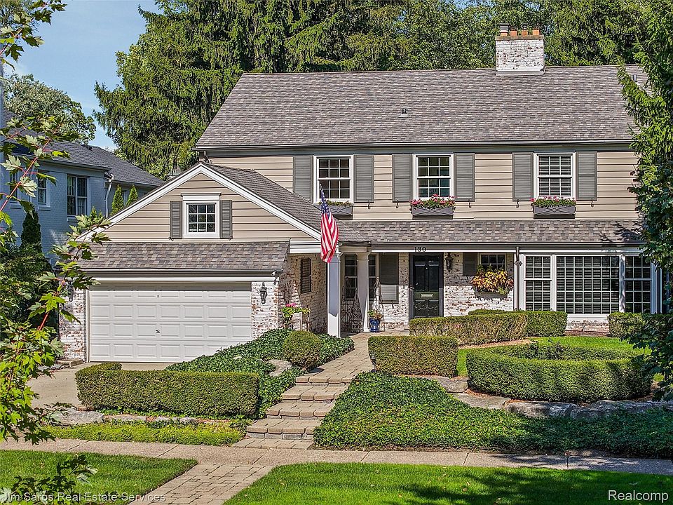 Ideally located between The Boulevard and Kercheval, 130 Merriweather offers a highly walkable setting at an attractive price in one of the most sought-after areas of The Pointes! This move-in-ready colonial sits on a generous, nearly quarter-acre lot and features an inviting floor plan highlighted by a spacious living room with a natural fireplace and oversized windows that fill the home with natural light and showcase beautiful original plaster moldings and hardwood floors throughout. The formal dining room showcases striking built-ins and opens to a renovated eat-in kitchen with granite countertops, abundant storage space, a beverage center, pantry, and stainless steel appliances. Additional living space includes a charming family room with a fireplace overlooking the scenic, secluded backyard and a handsome library/home office with built-ins and a third fireplace.