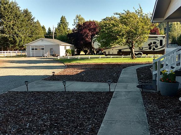Gorgeous set up in the country with views of the mountains. This split floor plan 1782 sqft manufactured home features 3 bedrooms and 2 bathrooms it has a gorgeous kitchen that has been remodeled with granite counter tops. Abundant counter and cupboard space as well as a large pantry. There is a living room and family room. The master bedroom is large and has a huge bathroom that has been remodeled. Outside you will find a huge shop with large roll down doors, as well as a two car detached garage and another single car garage that has a side for the hobbyist. RV parking with full hook-ups, fenced garden and manicured lawns. Easy circular driveway with vinyl fence. This is a park like setting and is a must tour!