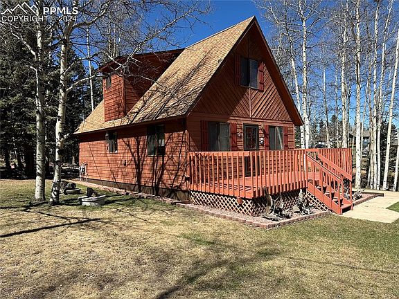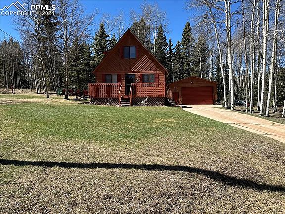 Clean and neat rancher with 3 bedrooms, 2 baths and 2 car detached garage. Total of 4 level lots =.85 Acres!!!!!New appliances in kitchen with granite countertops. Large living room with walk out to large front deck. Tile floor in Dining room and kitchen. Open concept thru out kitchen, dining room and living room. Granite countertops in kitchen and bathroom. Main level bedroom and bath. Washer and dryer included. Upper level with 2 large bedrooms and bath. Beautiful lots with aspens, pine and spruce. 10 minutes to Divide, 25 minutes to Woodland Park, 30 minutes to Cripple Creek. Close to fishing, hiking, restaurants, casinos and attractions.