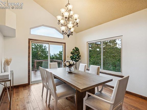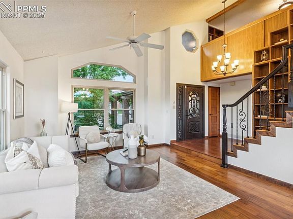 MOUNTAIN VIEWS *CUL-DE-SAC * WOOD FLOORS * UPDATED KITCHEN AND BATHS * COMPOSITE DECKS * SOLAR PANELS * ROOF(2018) * BUILT-INS * EV OUTLET* WOLF RANGE * CENTRAL AIR Perched on a serene lot with stunning views of Cheyenne Mountain, this beautifully updated home radiates warmth, character, and a deep sense of peaceful living. From the moment you step inside, you’ll be welcomed by an airy, light-filled atmosphere and an inviting layout that flows effortlessly from room to room. Thoughtfully updated over the years, the home features a refined Craftsman style with rich woodwork, custom built-ins, and timeless details throughout. The gourmet kitchen is a true showstopper—designed to delight any chef—with premium cabinetry, granite countertops, a Wolf range, Miele steamer, farmhouse sink, built-in seating, and much more. Ideal for entertaining, the kitchen opens to surrounding living spaces, creating a seamless and social environment. Step outside onto the expansive composite deck and enjoy the unmatched sunrises, sunsets and starry nights. Inside, the main level also includes hardwood floors throughout, a cozy gas fireplace, reimagined banister, and bespoke shelving. Upstairs, the elegant staircase leads to a versatile landing with more built-ins and hardwood flooring. The primary suite serves as a peaceful retreat, complete with its own private deck, wood floors, and a luxurious en-suite bath with a spa-inspired walk-in shower. Two additional bedrooms and a shared full bath complete the upper level. The finished lower level offers endless possibilities—whether you're envisioning a game room, media lounge, or creative space. Eco-conscious features include a full solar panel system and an EV charging outlet in the 2-car garage. Additional highlights: central air and low-maintenance stucco exterior and decks. Located just minutes from Cheyenne Mountain Elementary, Cheyenne Mountain State Park, shopping, and more—this home is stylish, move-in ready, and truly loved.
