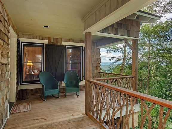 Perched within the private, gated Wolf Knob Acres subdivision, this 2 bedroom, 3 bath, 1.5 story home also features two bonus rooms. On the main floor find the dining area, living room with a captivating stone, wood-burning fireplace, and the kitchen with stainless steel appliances, granite countertops, and a skylight that welcomes natural light. The main level primary and second bedrooms are each accompanied by an en suite bathroom. Overlooking the living area is a loft with the 3rd bathroom, perfect for an office space or reading nook. The attached garage is accessed from the second bonus room, just off the main level living area. Three wood-burning fireplaces can be found in the home, in the primary bedroom and the living room, and on the partially covered deck. Take in spectacular long-range views from the side deck as you unwind from the day, sip your favorite beverage, and listen to the serendipitous sounds of nature. Adjoining National Forest Service land - so no one will be able to own or build directly behind this home - you're ensured natural wooded surroundings and privacy. The HVAC unit is approximately 2 years old and the newly replaced roof is backed with a generous warranty. Within 15 minutes from the beach access area at the pristine Lake Glenville and all the summer water activities it entails - swimming, kayaking, boating, and more. This serene and private mountain oasis is the perfect getaway to start your next adventure!