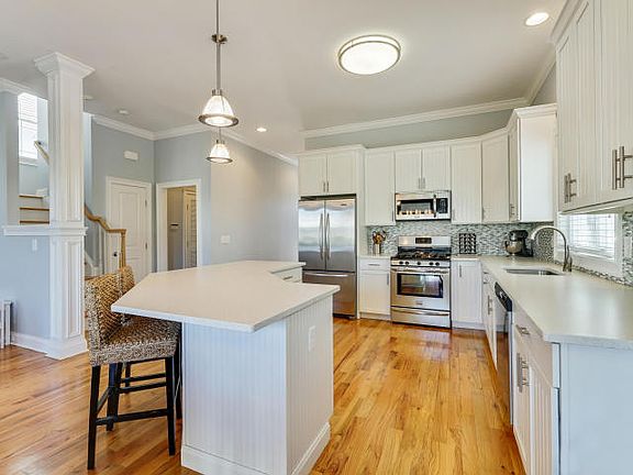 Imagining waking up this Summer to the Sun Rising over the Atlantic Ocean. Just 4 years young, this 4 Bedroom, 2.5 Bath Colonial boasts a Coveted Open Floorplan with Solid Oak Hardwood Floors throughout the First Floor and Stairwell. Enjoy Cooking, Dining or Lounging all in one area w/ the Kitchen, Dining Room and Living Room all open. Your Kitchen comes equipped with 42" Beadboard Shaker Cabinets, Glass/Stone Backsplash, Soft Colored Quartz Counter-top with Center Island. Living Room features Built in Bookcases and Cabinetry, Surround Sound Speakers Inside and Outside and a Stone Surround Gas Fireplace. A Multi-Tiered Stone Patio w/ Built in Weber Grill and a Gas Firepit with Seating for all you guests. Prime location just about a 1/4 mile from the Manasquan Train Station & Curtis Park