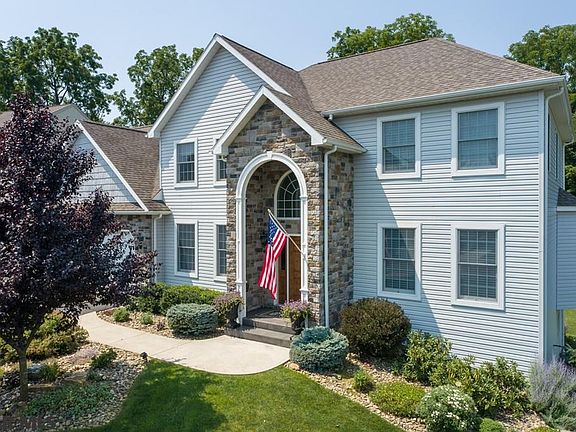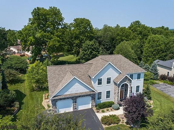 Ideal, superb, marvelous & sublime. Take your pick as they all perfectly describe this wonderful home in Sterns Crossing. This nicely updated 5 bedroom Rider-built home offers so much more than the ordinary. Some of the many features include an open granite kitchen with a large island, cherry cabinets & stainless appliances. Crown molding throughout the home, chair rail, picture framing & a custom mantle. On the 2nd story, you'll find 4 spacious bedrooms including an ensuite. The Master bedroom has a large walk-in closet with custom built-ins & a gorgeous bathroom with granite vanity, tiled shower & soaking tub. The walkout lower level is home to the 5th bedroom, a full bath & a 28x18 family room equipped with a handsome wet bar, cork flooring & a walkout to the partially covered lower patio. Enjoy time spent on the composite deck overlooking the pristine landscape & the flat, private yard. Walking distance to the brand-new Spring Creek Elementary, close to groceries, shopping, and I-99!