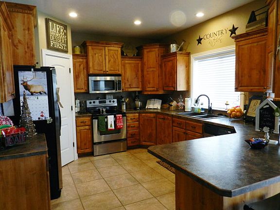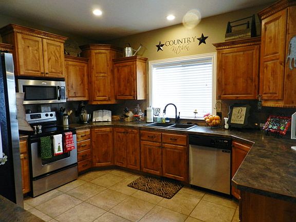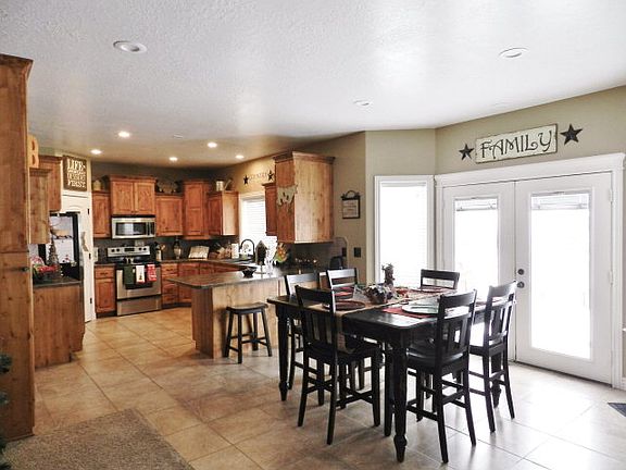 This beautiful home sits at the end a quiet cul-de-sac and backs up to farmer field so you can enjoy privacy on the large deck or while working in the yard. Great subdivision located just over a mile from Jefferson elementary, Rigby Middle and Rigby High Schools. Home has beautiful kitchen with staggered alder cabinets and tile floors. You will enjoy the great room in this home its awesome for entertaining! Great room has a beautiful corner gas fireplace wrapped in alder. Home has nine foot ceilings throughout for a spacious feel. Laundry/Mudroom has a utility sink and counter space. Oversized Master Bedroom has crown moldings with accent lighting. Master bath has big corner jetted tub with separate shower and double sinks. 2 more bedrooms and a bathroom on the main floor. In the basement is a large family room, 3 large bedrooms, bathroom, and large storage room with cold storage area. 3 car garage has a large storage shelf in single bay for all your stuff. Yard is fully landscaped with mature trees and shed out back to keep everything out of the weather. This home is very very clean inside and out come take a look at this awesome home today!!