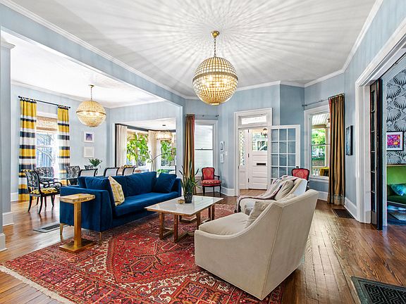 Ready to be WOWED? Love modern grandeur and historic charm? Fully UPDATED/ RENOVATED, a sanctuary of modern elegance nestled in the heart of Historic Oakwood near downtown Raleigh. This exquisite residence spans over 3,400 square feet, artfully designed to offer both luxury and comfort. Step inside to find a harmonious blend of sophistication and functionality. First enter into an ornate vestibule and then into the open and expansive grand living area, family room, lounge, and sunroom, where 12' ceilings and rich hardwood floors flow seamlessly throughout the first floor. Professionally designed features include custom high-end lighting throughout and the highest end designer wallpapers (including SCHUMACHER/ FARROW & BALL/ TIMOROUS BEASTIES). The modern gourmet kitchen, designed for the culinary enthusiast, transitions gracefully into the dining and living areas, perfect for hosting intimate gatherings or grand celebrations. Three original fireplaces, one upfitted with gas burning logs in the living area. The residence boasts four generously sized bedrooms and three meticulously appointed full bathrooms, each featuring elegant tile flooring and modern finishes. The first-floor primary bedroom, expansive walk-in closet and dressing area, and en-suite bath, make for the perfect owner's retreat area. The primary bathroom is fully renovated and features a large walk-in spa like shower, 2 vanities, a private water closet, and a separate claw foot soaking tub room for total relaxation! There is even a large private side porch off the primary bedroom perfect for morning coffee. Closet just off the primary bedroom is plumbed for a stack washer and dryer to service just the primary suite. Upstairs features 3 spacious bedrooms, a full bathroom, laundry area, and 3 additional storage closets. The easy to access full daylight basement adds additional storage opportunities, and the bonus finished ground level ''Yoga Room'' has endless possibilities with both interior and exterior entrances. Outdoors, a private sanctuary awaits. The curated outdoor space is an ideal retreat, offering tranquility and a venue for alfresco dining on the back deck, front porch to meet and greet neighbors and friends walking by (The true Oakwood lifestyle) and lush green private side yard perfect for playing or your four-legged friends. The detached storage garage is the perfect set up for garden tools, mancave, or she shed. Current owners have drawings and RHDC approved plans to replace the current storage garage with a 2 story garage with studio apartment upstairs and studio/ garage space down. Off street parking/ driveway is large enough to accommodate 4-5 parked cars. This home is more than a residence; it is a testament to modern design, offering an unparalleled living experience in one of Raleigh's most desirable locales. Discover the essence of refined living at 130 North Bloodworth Street, where every detail is crafted for those who appreciate the finer things in life.