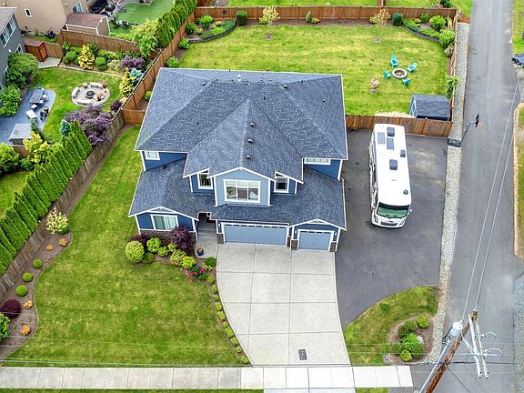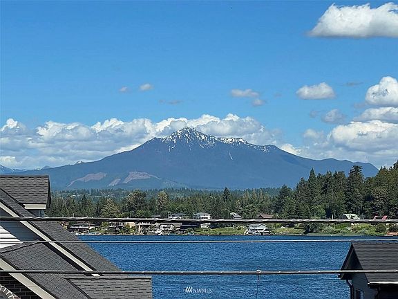LIVE BY THE LAKE! Sought After Mountain & Lake Views. Inviting & spacious design w/vaulted ceiling entry, main floor guest suite w/ bath, formal dining & family w/gas fireplace & Lg eating area surrounded by 3 separate glass sliding doors to covered deck w/outdoor gas fireplace. Chefs dream kitchen w/quartz counters, island seating & walk-in pantry. 2nd floor features Lg bonus/2nd family room + Double-door entry to primary suite featuring luxury bathroom w/double sink vanity, tub, glass shower & walk-in closet. 3 additional beds + utility room w/large sink. Sizable .34-acre level lot w/fully fenced back yard, stamped concrete patio + ample RV & guest parking. AC & tankless WH. Near Davies Beach/boat launch, but not too close:)