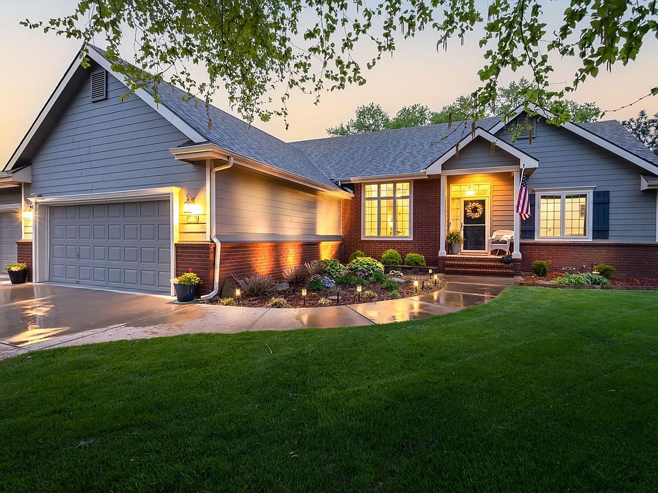 Welcome to your dream home! This stunning 5 bed/3 bath/3 car ranch boasts over 3,400 sq. ft. of living space and is located on just under a half-acre lot in the quiet and peaceful town of Valley Center. The house sits on a prime location, backing up to a tranquil neighborhood lake, and the well-manicured lawn and landscaping only add to its charm. This home is a prime example of pride of ownership inside and out. From the moment you step inside the front door, the gorgeous water views are on full display with an abundance of natural light streaming through the large windows that line the back of the house. The open concept main floor living area is the perfect gathering space, featuring a cozy gas fireplace and plenty of room for entertaining. The completely remodeled eat-in kitchen is a chef's dream with sleek quartz countertops, stainless steel appliances, beautiful refinished hardwood floors, under and above cabinet lighting, an eating bar, and plenty of storage in the reach-in pantry with pull-out drawers. The split bedroom floor plan offers privacy, with the master bedroom suite located on one side of the house, complete with a water view and a spa-like en-suite master bathroom featuring a tiled shower, jetted corner tub, and large walk-in closet with upper seasonal racks. On the other side of the house, two additional bedrooms share an updated full bathroom. And let's not forget about the adorable main floor laundry room that is conveniently located just outside of the master bedroom. Downstairs in the view-out basement, you will find a rec room that is wired for surround sound with a built-in entertainment center and a wet bar with a full-size refrigerator that stays. There is also a full bathroom with a shower/tub combo and two more bedrooms, one of which is oversized and perfect for setting up an office, workout room, toy room, or anything else you may desire. The huge designated storage room with built-in shelving provides ample space for all of your storage needs. Other mechanical features of the house include a Culligan water softener and reverse osmosis system that stay, plus an HVAC system that is only about 6 years old. Even the 3-car garage is impressive as it has been fully-sheet rocked with epoxy-coated flooring and has a workspace, utility sink, and provides tons of storage in the built-in cabinets/shelving. The star of the show is definitely the fully-fenced waterfront backyard though. It is a true oasis with an expansive stamped concrete patio that is large enough for all of your patio furniture, an outdoor dining set, a fire pit, hammock, and more! As an added bonus, the lighted gazebo remains with the property and the yard maintenance is a breeze with an underground sprinkler system that is fed by an irrigation well. On top of all of that, there are NO SPECIALS TAXES on this property. This home is perfect for those who seek a peaceful retreat while enjoying all of the amenities of modern living and only being about 10 minutes away from Wichita. Don't miss your chance to make it your own! *See the promo video for additional views of this home.*