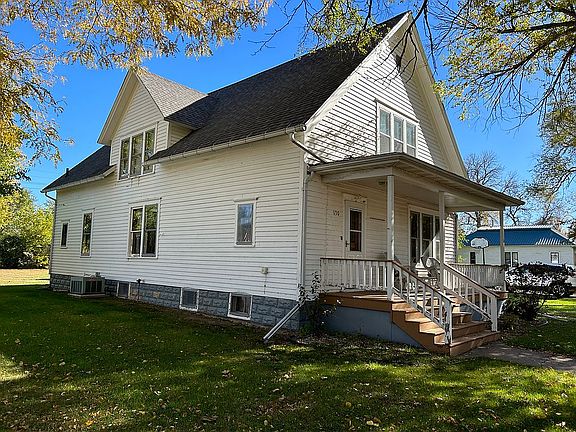Beautiful story and 1/2 home with full basement, set on 3 city lots. Nice front porch. Unattached finished 20 x 24 oversized single garage with concrete driveway. Three other shed/small garages. Kitchen appliances included. Forced air heat and central air. This home will not qualify for first time home buyers loan, as sheetrock and some basement repair needed. Other level pictures provided to serious buyers only. All reasonable offers considered.