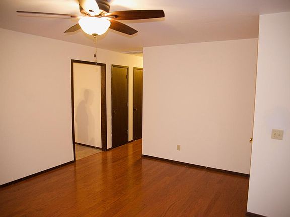 Nice sized bedrooms. Eat in kitchen with nice sized laundry room off to the side. Fenced in yard. Good sized one car garage. New floors throughout. Ceiling fans in living room, kitchen and all bedrooms. Quiet neighborhood, small town living close to Springfield. Master Bedroom 13'8" x 12 Second Bedroom 13x11 Third Bedroom 12 x 9'5" Living Room 15'2" x 12'10" Eat in Kitchen 15 x 12 No smokers. Approved pets allowed with additional fees. Credit and background checks required. Approved pets allowed with additional charges for pets. No smokers.