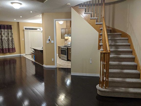 Dream Home!! Beautiful 3 Bdrm 4 Bath Semi With Fin. Bsmt With Quick Access To Multiple Hwys! This Beauty Is Total Move-In Featuring Open Concept Kitch. W/ Stainless Appl, B/S, Pot Lights & Walk Out To Patio. Open Concept, Main Flr Hrdwd, Living Rm W/ Cathedral Ceiling, Finished Basement, Sep. Dining Rm. Master W/ 4 Pc Ens, W/I Closet & Coffered Ceiling. Two Other Good Size Bdrms