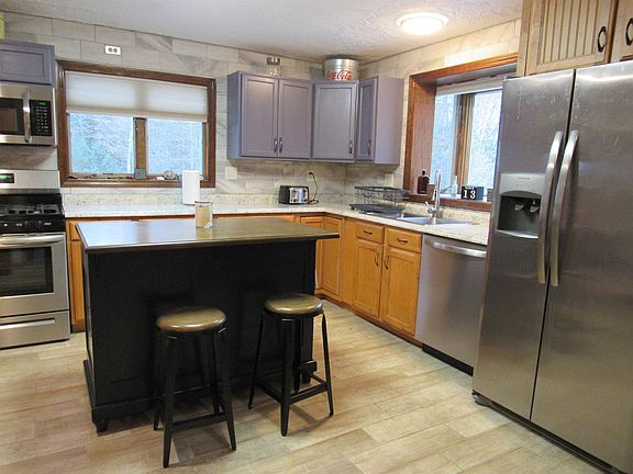 Shelburne, NH, is renowned for its picturesque landscapes and serene atmosphere. Living in this beautiful area means being surrounded by outdoor adventures, from hiking and skiing to exploring the White Mountains. This home's exterior exudes charm and functionality. The vast garage space is a standout feature, boasting a total of five+ bays, including two deep garage bays in the front and an additional three bays accessible from the back. Whether you're a car aficionado or someone who appreciates extra storage space, this property will cater to your every need. The exterior also features a delightful deck that overlooks the sprawling almost an acre of land, providing the perfect spot to unwind, entertain, or simply take in the serene surroundings. As you step inside, the interior of this home is equally impressive. The modern kitchen is a culinary delight. With a total of four bedrooms and three bathrooms, this home offers ample space for family and guests. A first-floor bedroom with bath, and additional bathroom with laundry is great if you want to live all on one level. Possibility of assuming the current mortgage which is an interest rate of 2.25% to a qualified buyer.