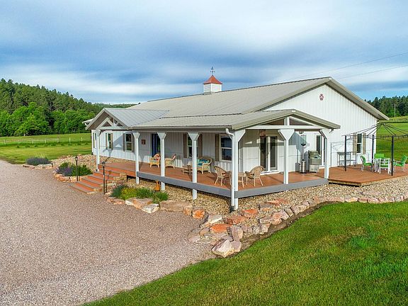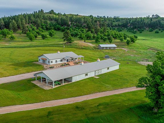 Impressive 186 acre Black Hills property with a one of a kind home that combines maximum efficiency with detailed elegance. From the time you enter this one-level home you will feel the grand sense of spoiled luxury you've always deserved. It has an inviting atmosphere and an open floor plan designed for entertaining guests. Many custom features including a deluxe kitchen, custom cabinetry, solid Caesar stone counter tops, formal dining room, private den, spacious master suite, spa tub, gas fireplace, in-floor heat, dark hard-wood flooring, French doors, wrap-a-round covered porch, and a private deck. Bunkhouse, horse barn and 40' x 120' shop. This handsome country estate is an exceptional find that combines picturesque surroundings, a distinctive home for lavish living and a great set of out-buildings. Beautiful property with live water. $1,387,000.