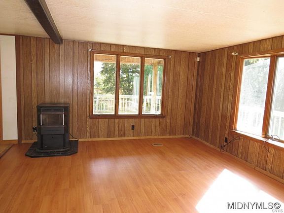 Secluded setting on dead-end road. Spacious doublewide is on a full foundation and includes three bedrooms, two baths, an eat-in kitchen, living room and dining room. The wrap around deck is great for entertaining, or a quiet evening meal. The basement is partly finished with knotty pine walls.