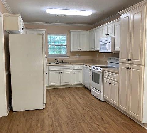 Back on market due to no fault of seller! AVOID THE HEAVY TRAFFIC -- ONLY 15 MINUTES TO FORT GORDON, GATE 2! NO HOA! This four bedroom ranch home sits on almost half an acre and features new paint in all main living areas and bedrooms. New LVT flooring in kitchen, dining and baths. Split bedroom plan. Eat-in kitchen with white cabinets, neutral color tones, new microwave and all other appliances included. Dining area with chair rail molding. Spacious great room with cathedral ceiling and fireplace. Owner bedroom with trey ceiling, recessed lighting, walk-in closet and private bath with double sinks. Laundry closet with extra cabinet storage. Covered front porch and rear patio. Large wooded backyard with storage shed and chicken coop, both stay!