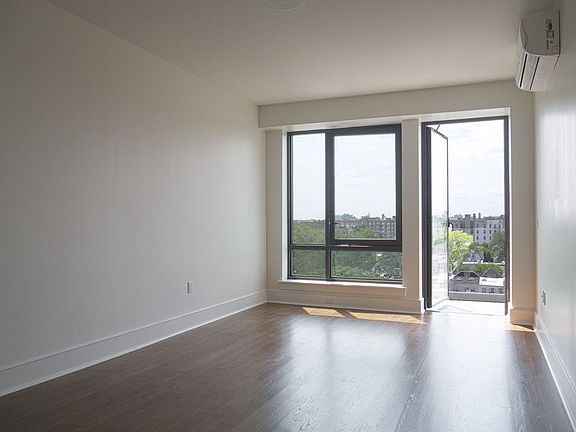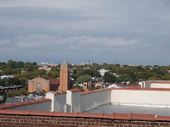 $3600 - Available 2/1/19 Top floor 2 Bedroom, 2 Bath apartment with a private balconies off the living and master bedrooms with views from Manhattan to the Verrazzano! The living room is over 19' x 11' with a 5 x 7'10" balcony with glass enclosure and steel railings. At the rear is a windowed island kitchen with Stainless Steel GE and Jennair appliances including dishwasher and microwave, Quartz counters, wooden base and white upper cabinets, and porcelain floors. The master bedroom has an en-suite bathroom with glass shower stall and a huge walk-in closet, and a private 5 x 10 balcony. The second bedroom is over 10' x 9' with a closet, and there are coat and linen closets in the hallways. Both bathrooms have cream wall and grey tile floors with radiant heating. Features include 9' ceilings, private balconies with glass surrounds, floor-to-ceiling double-paned soundproof windows, Walnut stained hardwood floors, Italian ceramic kitchen floors, radiant heated bathroom floors, and multi-zone split duct tenant heat and a/c. Building amenities include Roofdeck with Manhattan and Prospect Park Views, 1100 sq.ft. landscaped backyard with grill, Bike Room, free Private Gym, Laundry Room, Tenant Storage Rooms, Virtual Doorman and landscaped entry with video security. 130 Ocean Parkway is pre-wired for Optimum and FiOS internet and cable services. There are only 2 apartments per floor on the 7th and 8th floors, for unrivaled privacy. The F and G trains are 4 minutes away at Ft. Hamilton Parkway, and there is express bus service to Manhattan down the block at the corner of Church Avenue and Ocean Parkway. Prospect Park, Horseback Riding, Tennis Courts, BPL Windsor Terrace Branch, 3 neighborhood schools and many great shops and restaurants are right outside your door. Cats OK, A Dog under 25 lbs OK with Pet Deposit Guarantors OK