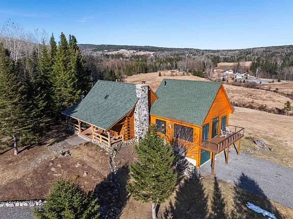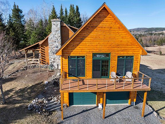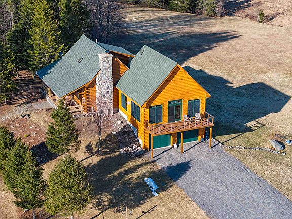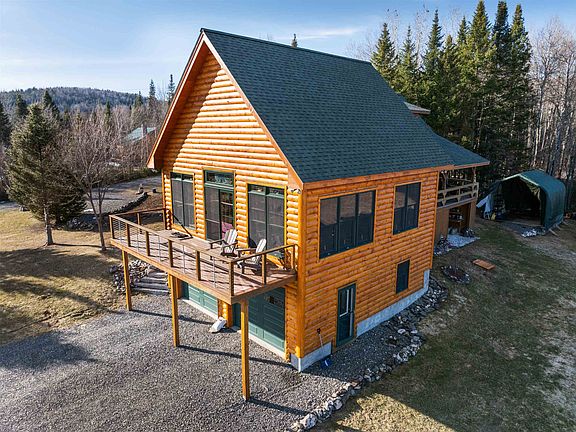 What a gorgeous property nicely setting surrounded by wonderful mtn views, nature's beauty of open fields, some woods, a small brook as well and all sorts of wildlife to watch! In 2017 the well-constructed log home was expanded with a stunning 27x26 log sided addition. This gave a 2-car finished heated garage, and a great room where you will be spending so much of your time. The great room is so inviting and spacious. It has windows all around letting in natural light & pretty views of the outdoors from every corner. This room has access to the open deck as well as to one of the covered porches (there are 2). The dining room & cozy seating area is accented by a gas fieldstone fireplace & high cathedral ceiling. Bedroom and 3/4 bath on main fl. Open stairway to 2nd floor where there is another bedroom plus a small loft that can serve as a sitting area, extra sleeping space or small office looking down onto the dining room, fireplace and great room. The 2nd floor bath boasts a large soaking tub. The walk-out basement offers a unique family room with a wonderful custom bar that is perfect for entertaining. Convenient direct entry from the new heated/finished garage into basement as well. Included is the standby generator for peace of mind, an extra shed and the large cover-it for more storage. Snowmobile by a private trail. Road maintenance is established & shared by 7 property owners. This is a special property that is so well cared for and needs nothing but for you moving in!