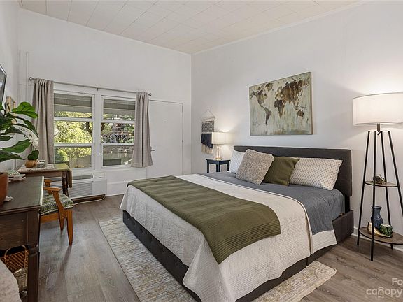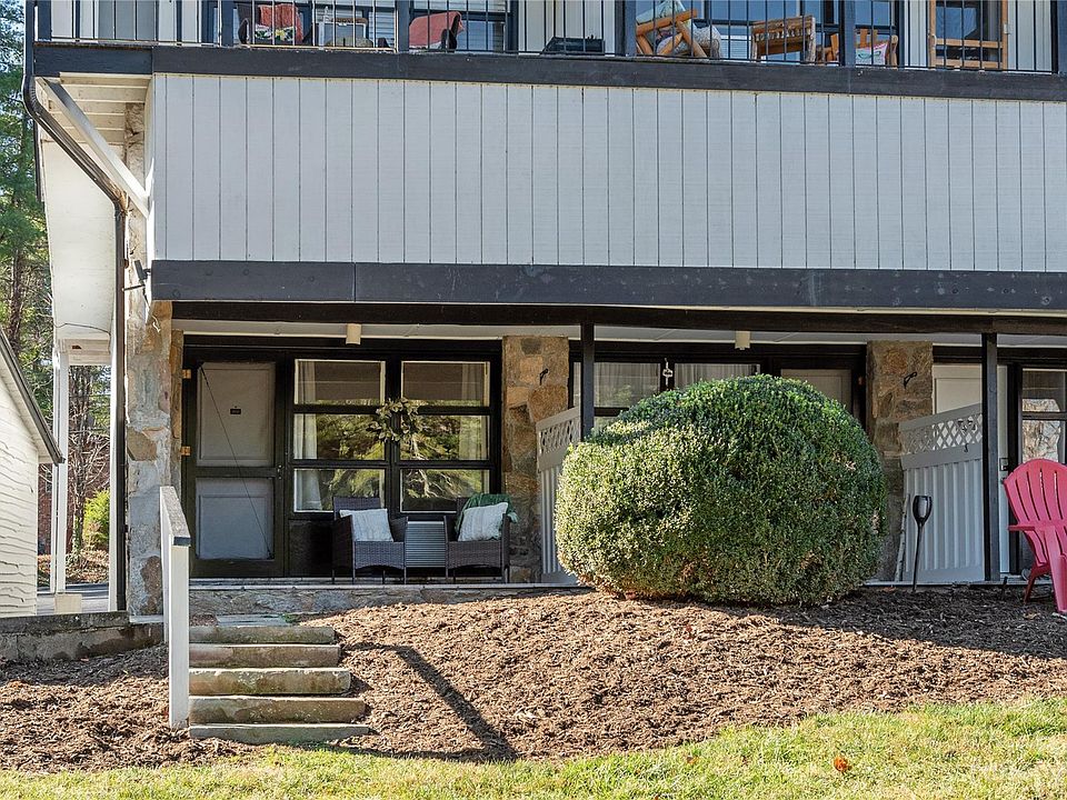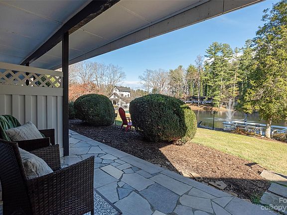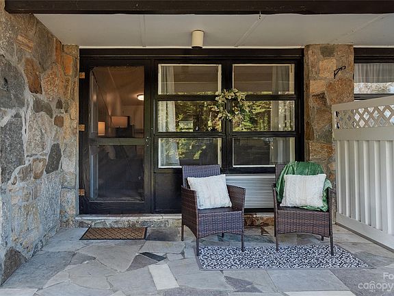 Bring your clothes and toothbrush...everything else is already here! Terrific studio size condo at the Mill House Lodge in the heart of Flat Rock. Tastefully decorated with lovely furnishings and decor. Refrigerator and microwave/air fryer convey for simple meals enjoyed on the porch overlooking the lakefront or in the small eat in area in the unit. Enjoy the outdoors with paddle sports, the fire pit, outdoor pool, tennis courts and deck overlooking the lake. Whether looking for an affordable full-time residence or investment property with great rental potential this end unit has a lot to offer. All utilities (electric, water, sewer, cable, wifi, trash pick-up) are included in the monthly HOA fee. Heat and air are provided by the individual wall unit in the condo. Common laundry facilities (washer and dryer) are provided on site. Convenient parking behind the Jordan building with easy access to this end unit.