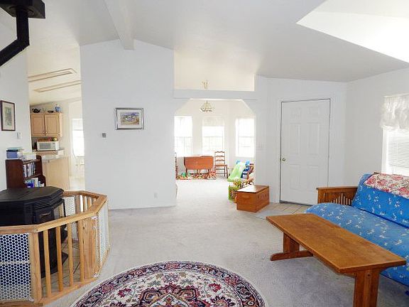 This beautiful 3 bedroom 2 bathroom home is located conveniently at the very north end of Big Pine. This home offers an open floor plan, expansive kitchen, cathedral ceilings, newer thermostatically controlled State certified pellet stove and tons of light. Huge fully fenced yard with automatic sprinklers and great mountain views. Detached two car garage with electric opener.
