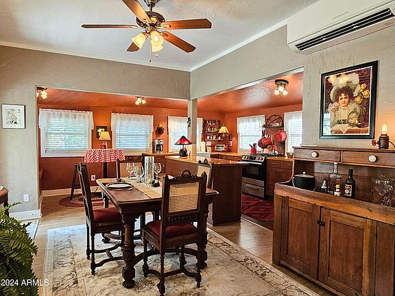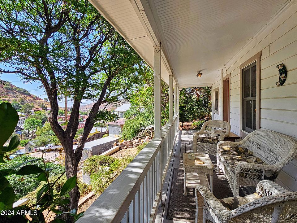 Historic Old Bisbee Bungalow, Completely Renovated, 1,069 sq ft. Two Bedroom/One Bath (plus office) and Classic, rebuilt Front Porch (TREX floor). Perched on the hilllside above Opera Drive, with fabulous views of downtown Old Bisbee and the surrounding mountains. Fully updated kitchen, with butcher block counters and breakfast bar, farm sink, s/s Whirlpool appliances and plenty of cabinet storage space. With newer metal roof, dual pane windows, laminate flooring, Mitsubishi Mini-Split, updated electrical and plumbing (PEX pipes), newer poured rear foundation, footers and retaining wall. Just 26 stairs up from Opera Drive, and a couple blocks from the galleries, restaurants, shops, and bars of Old Bisbee's Entertainment District.