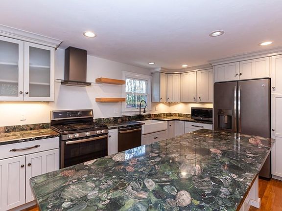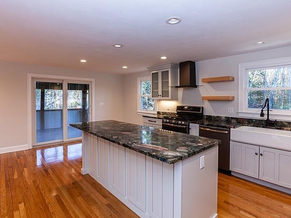 - Kit Dscrp: Window(s) - Picture, Main Level, Dining Area, Flooring - Hardwood, Countertops - Stone/Granite/Solid, Cabinets - Upgraded, Kitchen Island, Stainless Steel Appliances, Open Floor Plan, Recessed Lighting, Remodeled, Slider, Exterior Access, Gas Stove