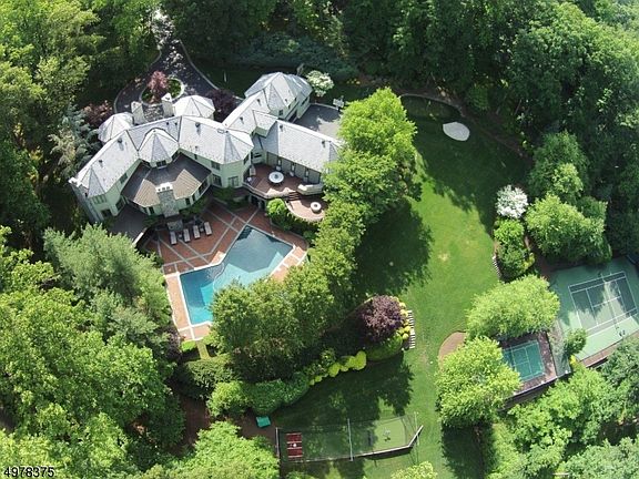 MAJOR PRICE IMPROVEMENT AND EXCEPTIONAL VALUE Magnificent custom built home in resort-like setting on Bernardsville mountain. Approx 12,000 sq ft of living space w incredible outdoor amenities. 1st fl features formal living room & dining room, gourmet kitchen w adj family room, mudroom & guest apt. Other interior highlights:7 fire places, oak flooring & intricate millwork. Walk-out lower level has extensive living space, fully equipped gym, infrared sauna, mini basketball court, wine cellar & kitchenette. Outdoor amenities include:tennis court, paddle court, putting green, batting cage, heated pool, mahogany deck w built in bbq, fire pit, outdoor tv & sound system. Amazing recreation & entertaining space