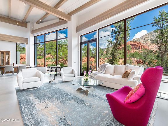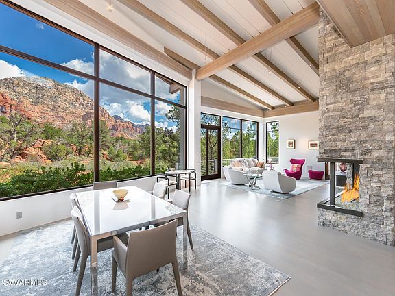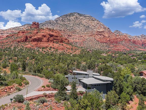 Stunning red rock views and an abundance of privacy, this home is everything you've been dreaming of and more. Located behind the gate in Thunder Mountain Ranch, this property fully utilized the building pad with Coconino National Forest just steps off the back patio. Thoughtfully designed by renowned architect Eric Brandt who describes the property ''While being modern, smooth and sleek in character, the home engages the rugged, natural setting.'' Built by Glenn Farner, this Sedona Home has the highest possible standards .3 Bedrooms plus office with elevator. Dramatic first impressions as you enter the great room featuring walls of glass incorporating the views into the contemporary living space. You'll fall in love with the clean lines, grey-stained oak hardwood floors, exposed beams, and the ultramodern kitchen highlighting one-of-a-kind Italian hood as a focal point, waterfall granite island, subzero refrigerator, miele dishwasher, and wine cooler. Luxury finishes throughout include floor-to-ceiling stacked stone ultra-chic fireplace, distinctive granite counters, elevator, electronic shades, and an oversized master bath with rain shower, jetted tub, and TOTO toilet. Outdoor living features a minimal upkeep lifestyle comprising of a covered patio off the kitchen with built-in BBQ and a wrap-around deck accessible from multiple points.