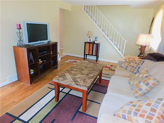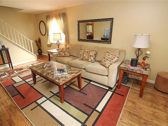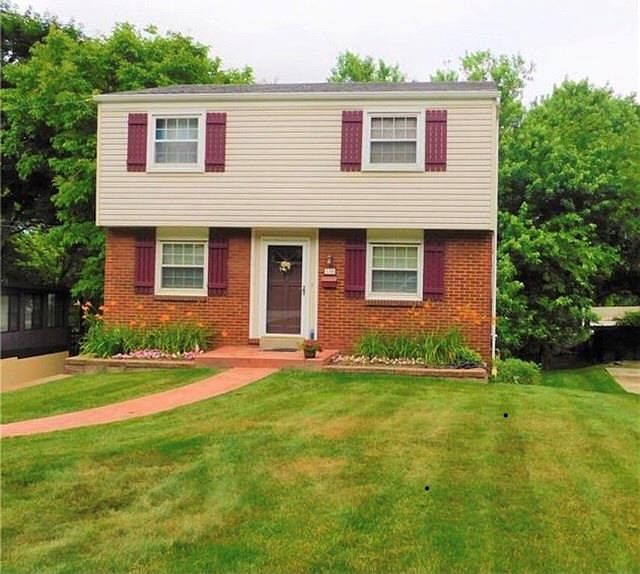 A dream come true - move right in! This 2 story has location, must-see features & more! Custom colored stamped concrete walkway & manicured front lawn leads to the front door. Entryway, complete with coat closet, is open to the living & dining room which feature beautifully refinished hardwood floors! Updated first floor powder room with pedestal sink is off of the eat in kitchen with newer dishwasher & neutral tones. Newer carpet in master & 2nd bedroom with original hardwoods in the 3rd bedroom; you'll love the master's walk-in closet as well! Benjamin Moore Paint throughout the main rooms. Finished basement offers tons of storage & great space to spend evenings. Basketball hoop & covered patio with rot iron railing make outside entertaining easy! Newer siding & roof, recently redone long driveway provides ample parking for all! With easy access to 376 & loads of nearby amenities (courts, field, dog park, & playground) this one is the complete package! A/C, furnace installed 2017!