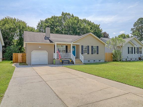 Stunning well taken care of home located in Goose Creek. When you walk into the house, you will be taken away by the open floor plan with upgrades throughout. The living room has a wood burning fireplace with shiplap surround and vaulted ceilings. The kitchen has updated appliances with black granite countertops. Down the hallway, there is an oversized primary bedroom with attached bathroom, two secondary bedrooms, and a second full bath. There is even a 4th bedroom over the garage. The fenced in backyard offers tons of privacy where you can enjoy a quiet evening under the covered porch or enjoy a relaxing swim in the above-ground pool. This move-in-ready home will not last long! Set your showing up today.