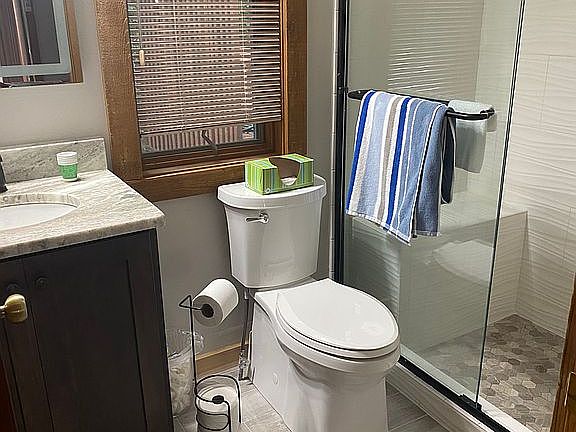 Totally renovated in 2021. Heated floors in bathrooms and kitchen. New water heater. New deck in 2023.