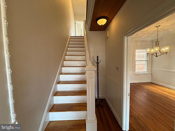 Souderton Borough Stone townhouse, refinished hardwood floors, 4 Bedrooms, 2 full baths, remodeled kitchen with new stainless steel appliances, under cabinet lighting and large breakfast bar, formal dining room open to living room with hardwood floors, covered front porch, laundry room with exposed brick wall and brand new washer and dryer, 1st floor full bath, Upstairs you will find 3 bedrooms also with refinished wood floors, built in dresser drawers, and ample closet space, plus another full bath, On the 3rd floor is a large bedroom w/walk in closet, sink and make up area, rear alley parking pad, 2 sheds, convenient to shopping and restaurants, move in condition!