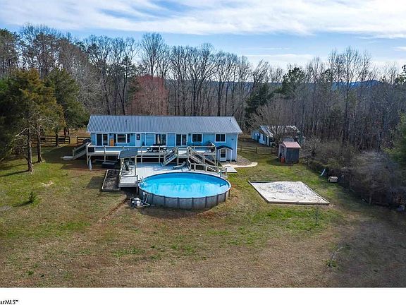 If you have been on the search for the property that has it ALL, look no further! 130 Pennant Lock Lane has everything from privacy, land, views, private lake frontage, custom features, entertaining space, work space, and SO MUCH MORE. As you pull up to the property you will immediately notice the seclusion that is present on this 2.78 acres along with the peace and tranquility that surround you. The adorable front porch welcomes guest as they arrive. As you take the first step inside the foyer please look down and notice the hand crafted work in the pine floors. The details are custom and absolutely stunning. As you make your way around the corner I promise you the first thing you will notice is the breathtaking mountain views that stretch from one side of the house to the other. All the windows and sliding glass doors make the views the focal point of the home. You have a beautiful view of Table Rock and Pinnacle Mountain. You can see a glimpse of the private lake as well. You could easily clear out some of the trees along the 100 feet of lake frontage that belongs to this property to make the lake more visible if you wanted! There is a beautiful area down by the lake with a fireplace/firepit structure. This property is also one of the few that has a grandfathered dock! Back at the house there is a two level Trex deck that wraps around the well maintained pool. As you step back inside you will find an open concept main living space. The openness of this space makes it ideal for entertaining! The kitchen features granite countertops, original cabinets that have been restored, and all the kitchens appliances convey with the property! One one side of the house you will find two bedrooms each with their own bathroom. On the other side of the house you will discover the massive master bedroom. You can still see those amazing views from the bay window! Coming back through you will notice the descending stairs leading to the basement. The basement is partially finished. There is power and water but just waiting for someone to take it to its full potential. There is a full bathroom and separate entrance. You will notice a huge bookcase against the wall... Make sure to pull it open to reveal the secrets behind it! There is just so much this property has to offer.