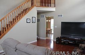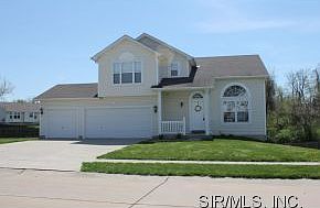 This home qualifies for the 100% USDA Rural Development Financing Program. Read on-Take advantage of your opportunity to own a spacious 4 bedroom, 3 bath home in the Reindeer Forest community. Enter the front door to find an amazing living room with vaulted ceiling and tons of natural light. The main floor features the living room, kitchen with dining area and breakfast bar, family room with a bay window, above fireplace tv mount and beautiful wood burning fireplace, main floor laundry and guest bathroom. Walk up the wood steps to the landing and from there you'll find four bedrooms, including a master suite with walk-in closet and bathroom with dual vanities. Enjoy the outdoors on the large deck overlooking the extra-deep backyard or on the covered front porch. A few of the extras include a 3-car garage, unfinished walkout basement leading to a covered patio and plumbed for an additional bathroom, gorgeous hardwood flooring and so much more throughout. The location is ideal, near the bike trails, interstates, shopping and dining. Call 618-977-1270 for a personal tour.