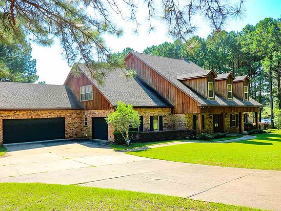 How would you like to wake up to this everyday? WATERFRONT!! Located in The Highlands, a gated community! Fish off the dock, swim in the 100 Acre Lake, or relax in the gunite pool and spa. Enjoy a peaceful lifestyle with incredible views of the approx. 6+/- acres. “Modern Lodge” best describes this custom built home, nestled in the pines, and surrounded by wildlife. Take in breathtaking views of the lake from the expansive upstairs balcony of this 7 bedroom 5 1/2 bath home. With 2 bedrooms down and a separate office. The kitchen has lots of storage and stainless appliances. The large family room really defines this home. Plenty of entertainment space in the large Family room, Eating area, Game room, Screened porch, and upstairs mini kitchen with gathering area . The spacious downstairs Master suite has built-in cabinets, a jetted tub, double vanity, separate shower and huge walk-in closet. The 2nd downstairs bedroom or Guests room has a private bath and a walk-in closet. The large laundry room has a shower & can double as a mud room. Great floor plan! You owe it to yourself to take a look at this home.