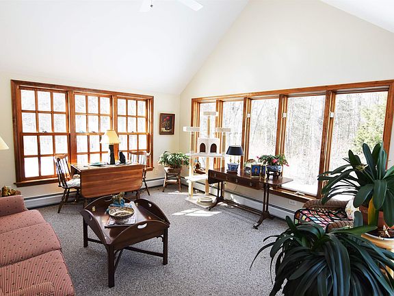 Conveniently located between Sunapee Mt and Lake, just minutes from Sunapee harbor and schools. Relax in this impeccably maintained 1988 custom built cape with flawless hardwood floors, woodwork and solid pine doors that continue to shine with an unique freshness. Main floor living includes social kitchen and dining space overlooking the backyard wildlife and distant NE stonewall boundary through a traditional bay window , archway entry to the spacious sunny living room featuring a center wood fireplace and guest entryway. The back of the house allows for quiet sleeping quarters with double closets adjacent to a full bath and study which leads to a 14x16 cathedral ceiled sunroom surrounded by windows to enjoy more of the peaceful atmosphere. Upper level has two large bedrooms each with walk in closets and a centered bath with private double sinks. A bonus family room over the 2 car attached garage has it's own heat source and exterior entry. Owners have private direct access from the garage to a mudroom with laundry plus kitchen and back yard accessibility. Full basement is spotless, mechanical updates include a boiler and an automatic generator, chimney is screened and capped. Septic is original 1000 gallon stone and pipe. Double oil tanks. Vinyl siding and a paved driveway complete the low maintenance aspect. Assisted showing only. Offer deadline Tuesday,3/14/2023 at noon