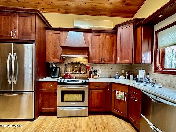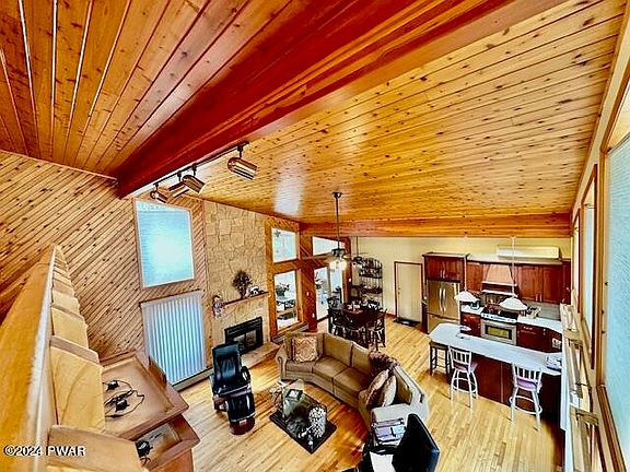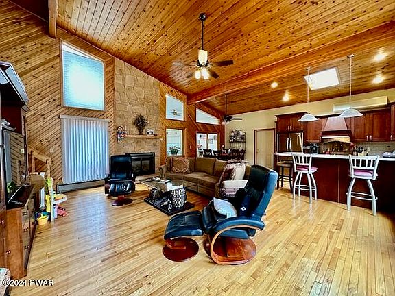 Nestled within the picturesque Pocono Mountains, this contemporary-style home exudes both beauty and warmth. Situated on a tranquil cul-de-sac, it offers the perfect blend of peaceful seclusion and convenient access to nature's wonders. Step inside to discover a meticulously maintained interior that reflects years of loving care from its owners. Boasting an open floor plan and cathedral ceilings adorned with tongue and groove wood, this home welcomes you with a sense of spaciousness and charm.The main level features a well-appointed kitchen with custom cabinets, stainless steel appliances, and a breakfast bar, making it ideal for both everyday living and entertaining. Relax by the cozy propane fireplace in the living room or unwind in the owner's suite, complete with a luxurious en suite bathroom featuring a jacuzzi tub, shower stall, and vanity desk.With two additional bedrooms, a loft/office space, and three full bathrooms in total, there's ample room for the whole family to spread out and enjoy.Outside, embrace the serene surroundings with a short stroll to Hemlock Lower Lake, where you can spend leisurely days fishing or simply soaking in the natural beauty. Plus, enjoy access to a variety of community amenities, including indoor and outdoor pools, fitness center, hot tub, sauna, tennis courts, and more.